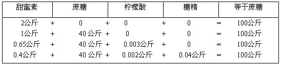 3、 甜蜜素與蔗糖及0.3%重量的有機(jī)酸(如檸檬酸)配合使用,甜度可達(dá)100倍以上。